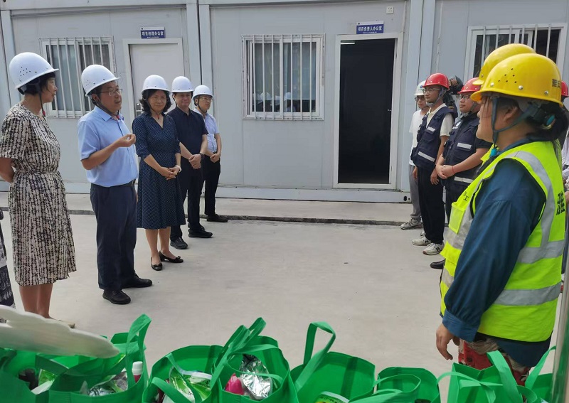 慰問(wèn)組一行深入項(xiàng)目施工現(xiàn)場(chǎng),詳細(xì)了解了項(xiàng)目的通風(fēng)降溫設(shè)施、防暑藥品配備、清涼飲品供應(yīng)、工人作息時(shí)間調(diào)整等關(guān)鍵防暑措施落實(shí)情況,并對(duì)施工現(xiàn)場(chǎng)的安全防護(hù)設(shè)施進(jìn)行了檢查。