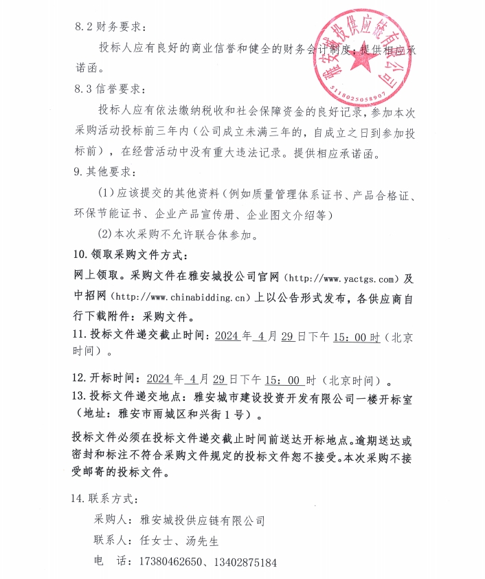 采購文件(2024年4月至2025年3月雅安城投供應鏈有限公司年度管件、管材采購